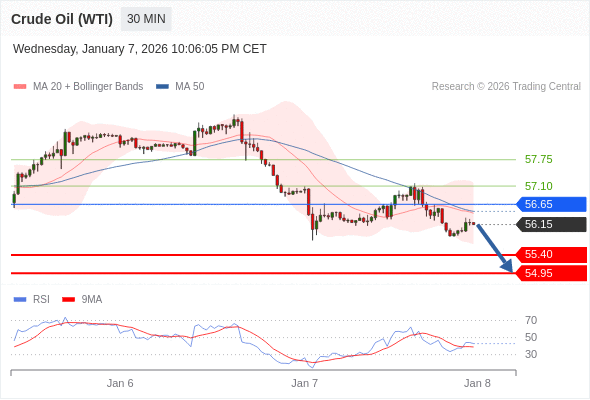 在 56.65 之下,看跌,目标价位为 55.40 ,然后为 54.95 。