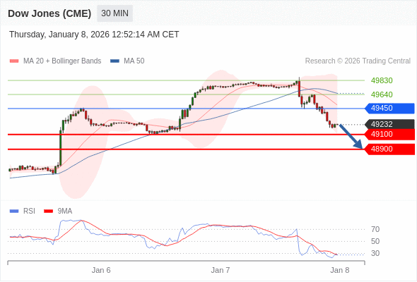 在 49450 之下,看跌,目标价位为 49100 ,然后为 48900 。