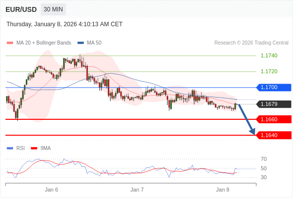 交易策略: 在 1.1700 之下,看跌,目标价位为 1.1660 ,然后为 1.1640 。