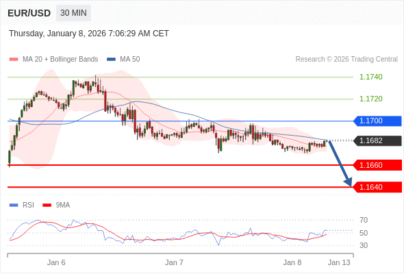 交易策略: 在 1.1700 之下,看跌,目标价位为 1.1660 ,然后为 1.1640 。