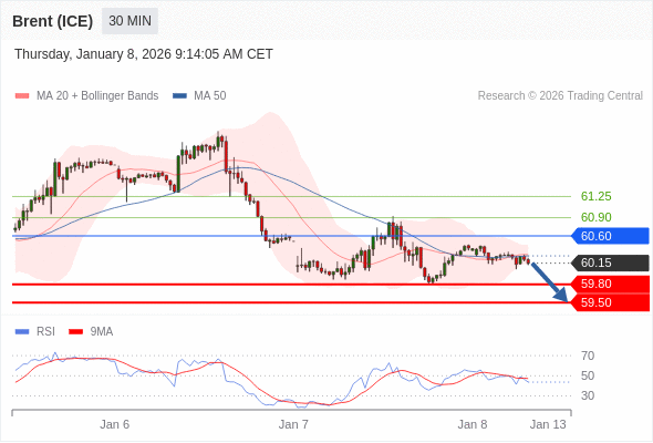 在 60.60 之下,看跌,目标价位为 59.80 ,然后为 59.50 。