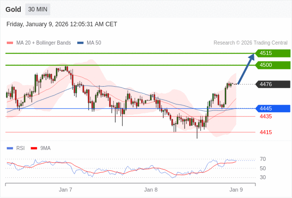 在 4445 之上,看涨,目标价位为 4500 ,然后为 4515 。
