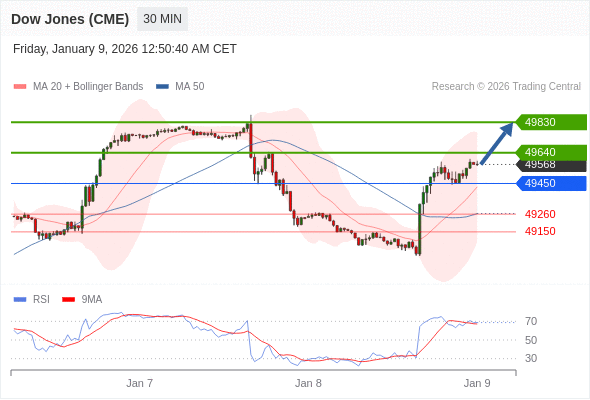 在 49450 之上,看涨,目标价位为 49640 ,然后为 49830 。