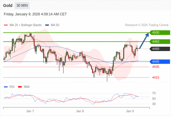 交易策略: 在 4445 之上,看涨,目标价位为 4483 ,然后为 4500 。
