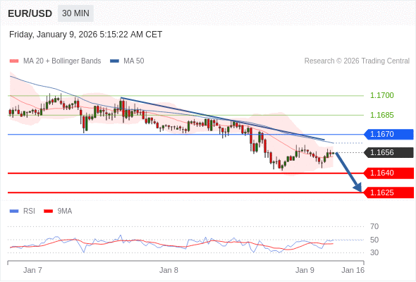 交易策略: 在 1.1670 之下,看跌,目标价位为 1.1640 ,然后为 1.1625 。