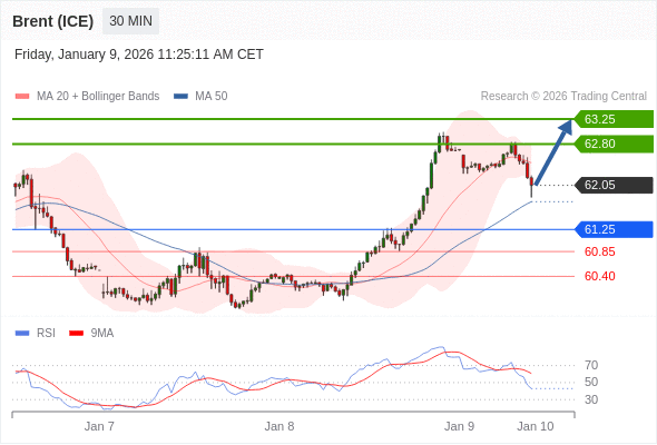 在 61.25 之上,看涨,目标价位为 62.80 ,然后为 63.25 。