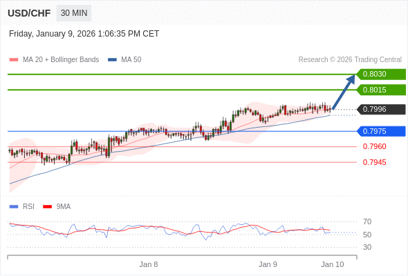 在 0.7975 之上,看涨,目标价位为 0.8015 ,然后为 0.8030 。