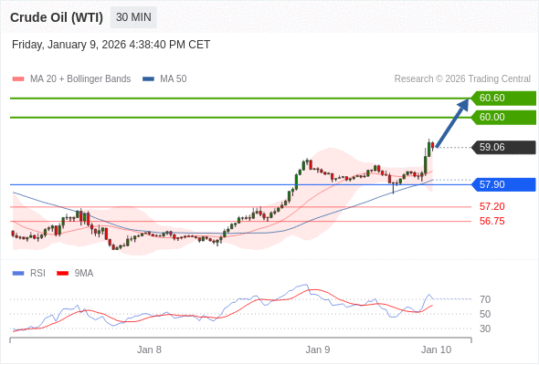 在 57.90 之上,看涨,目标价位为 60.00 ,然后为 60.60 。