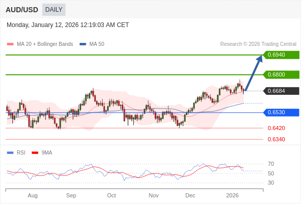 在 0.6530 之上,看涨,目标价位为 0.6800 ,然后为 0.6940 。
