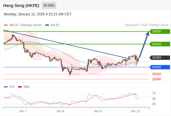 在 26180 之上,看涨,目标价位为 26640 ,然后为 26890 。
