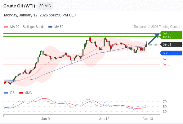 在 58.35 之上,看涨,目标价位为 59.60 ,然后为 59.85 。