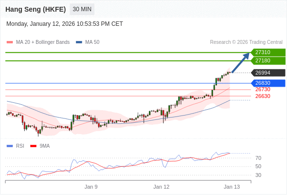 在 26830 之上,看涨,目标价位为 27180 ,然后为 27310 。