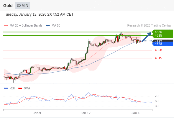 在 4578 之上,看涨,目标价位为 4615 ,然后为 4630 。