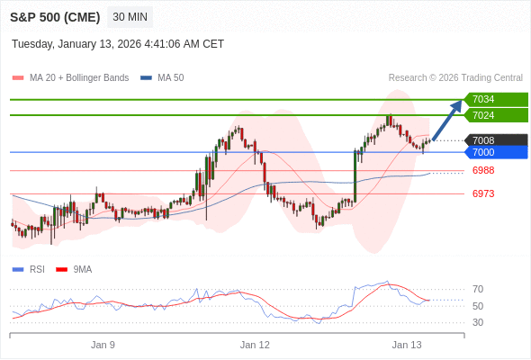 在 7000 之上,看涨,目标价位为 7024 ,然后为 7034 。