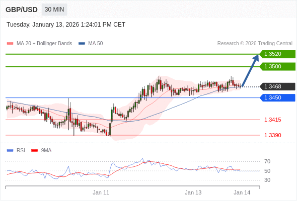 在 1.3450 之上,看涨,目标价位为 1.3500 ,然后为 1.3520 。