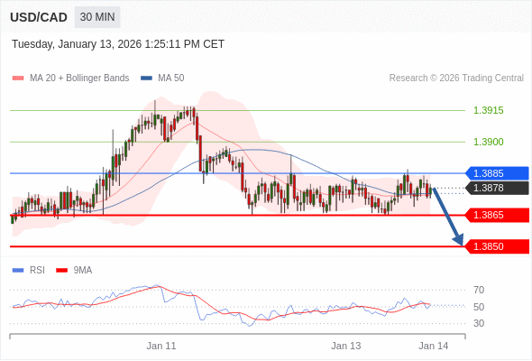 在 1.3885 之下,看跌,目标价位为 1.3865 ,然后为 1.3850 。
