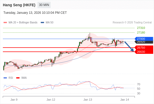 在 27000 之下,看跌,目标价位为 26750 ,然后为 26630 。