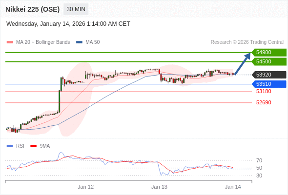在 53510 之上,看涨,目标价位为 54500 ,然后为 54900 。