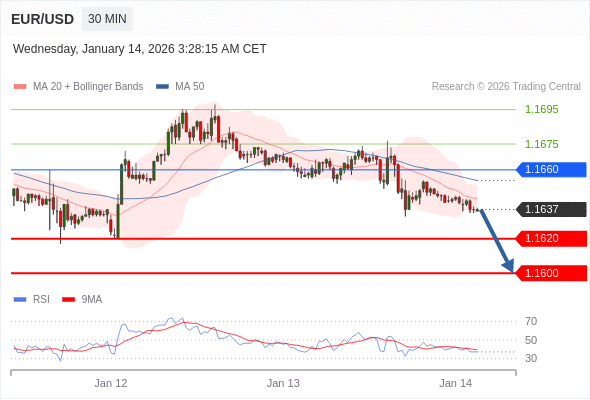 交易策略: 在 1.1660 之下,看跌,目标价位为 1.1620 ,然后为 1.1600 。