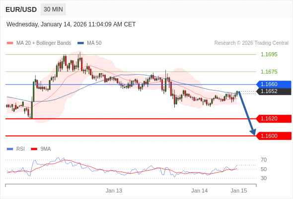 在 1.1660 之下,看跌,目标价位为 1.1620 ,然后为 1.1600 。