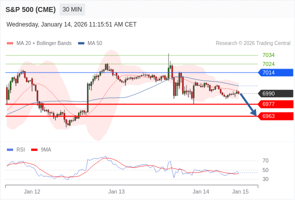 在 7014 之下,看跌,目标价位为 6977 ,然后为 6963 。