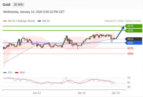 在 4600 之上,看涨,目标价位为 4655 ,然后为 4675 。