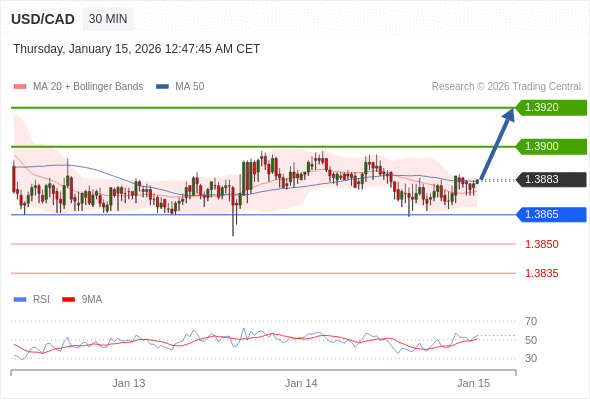 在 1.3865 之上,看涨,目标价位为 1.3900 ,然后为 1.3920 。