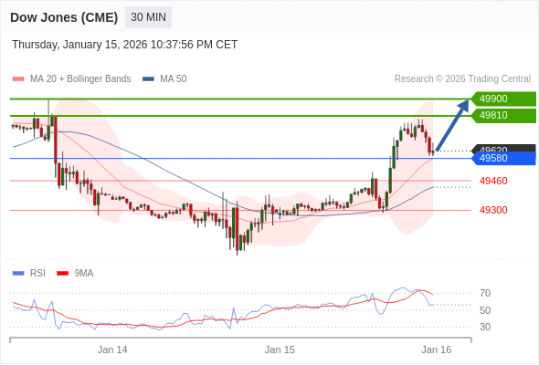 在 49580 之上,看涨,目标价位为 49810 ,然后为 49900 。