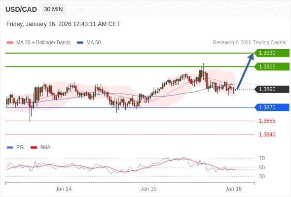 在 1.3870 之上,看涨,目标价位为 1.3915 ,然后为 1.3930 。