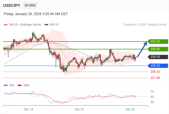 在 158.30 之上,看涨,目标价位为 158.85 ,然后为 159.10 。