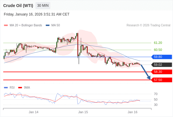 在 59.80 之下,看跌,目标价位为 58.30 ,然后为 57.50 。