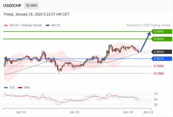 在 0.8010 之上,看涨,目标价位为 0.8050 ,然后为 0.8065 。