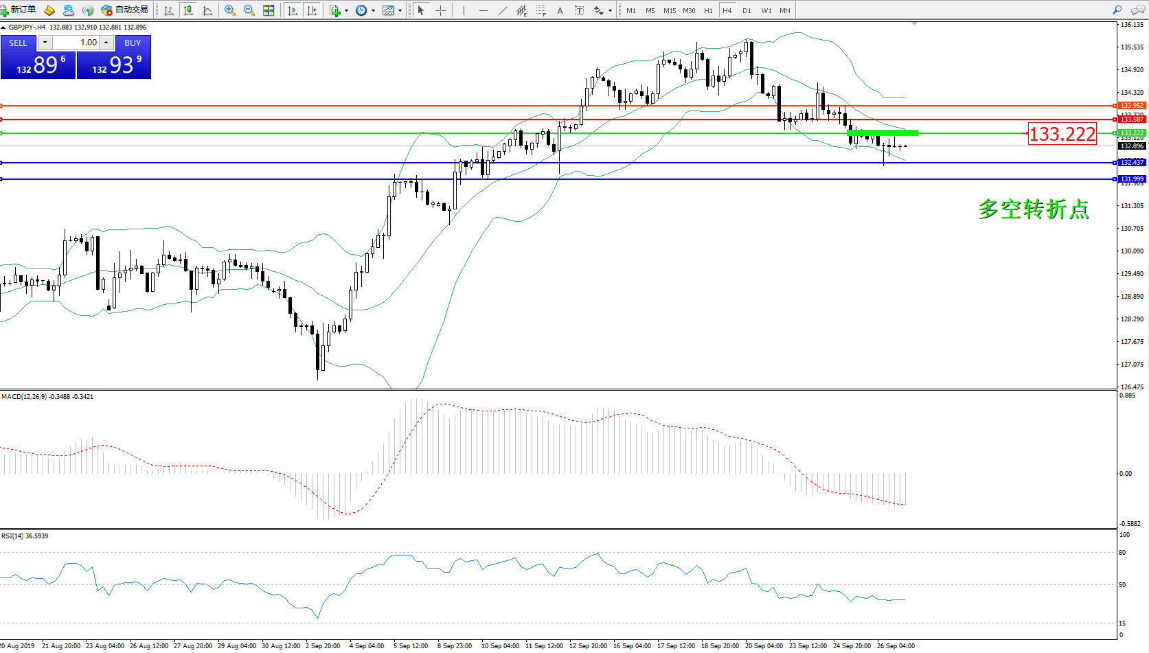 交易策略:133.222下方看跌,目标132.437131.999