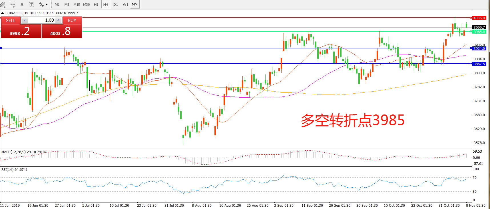 多空转折点:3985.00