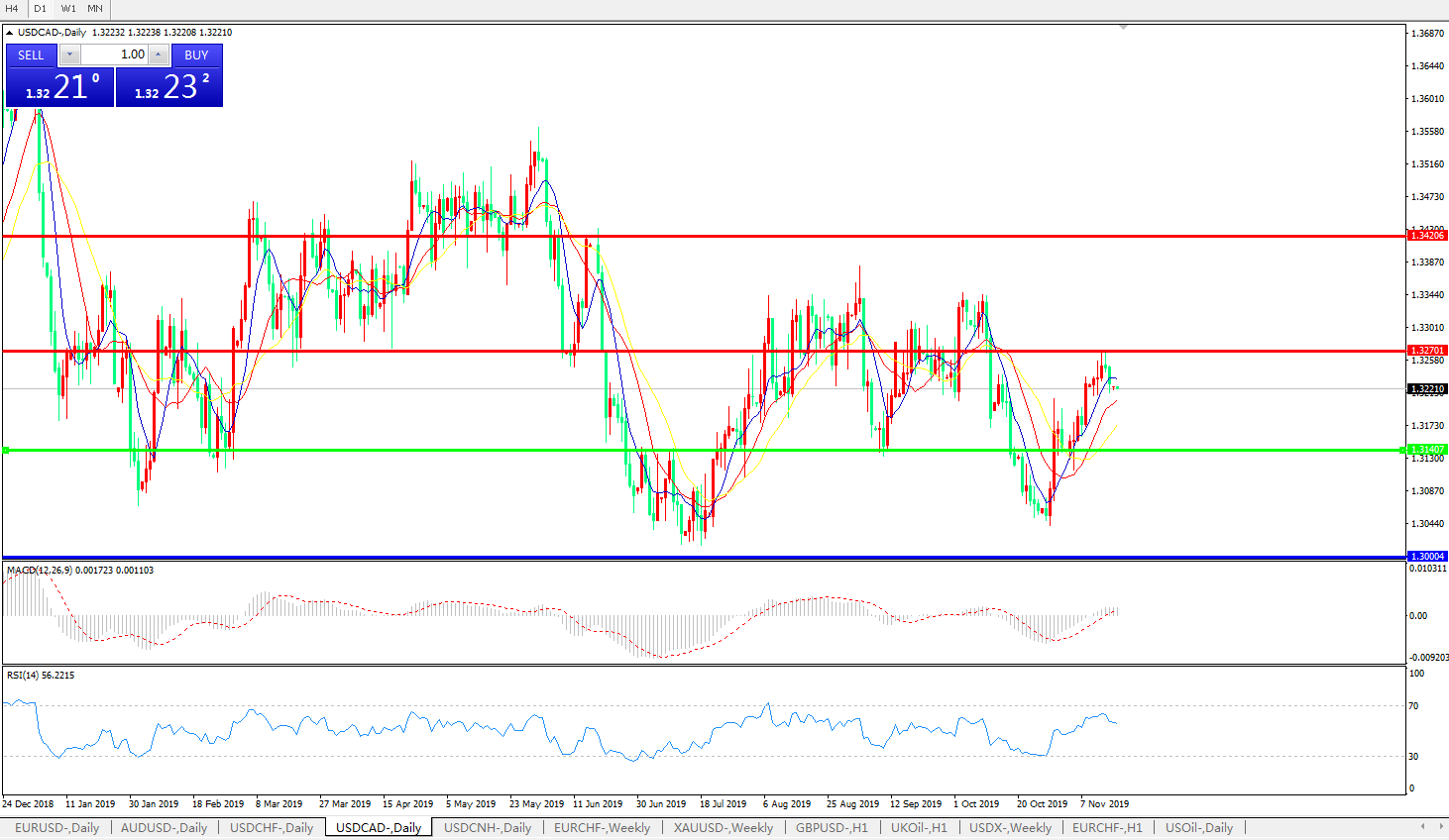 美元兑加元USDCAD    日线图: