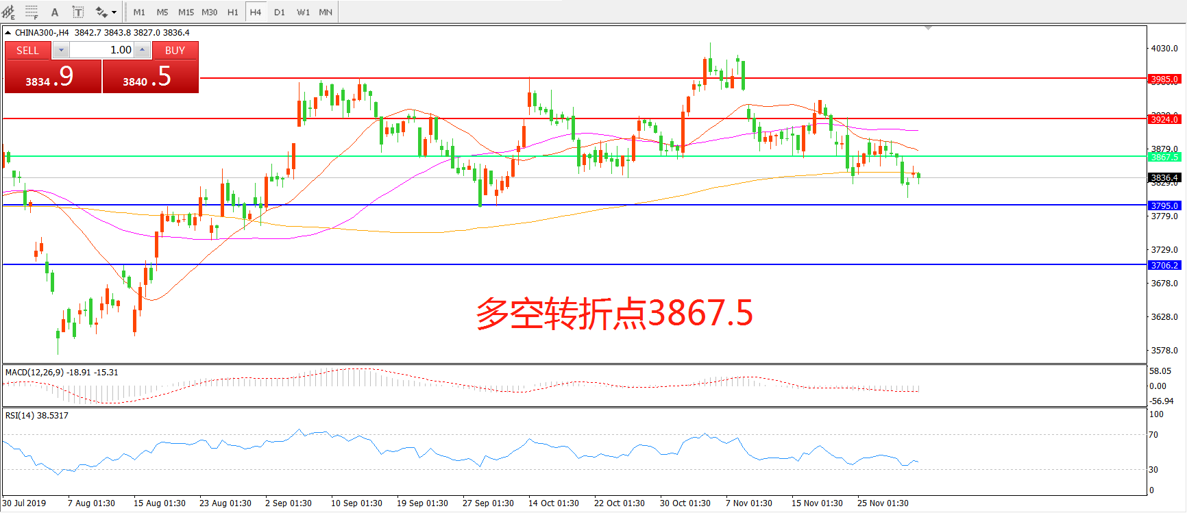 沪深300指数CHINA300 4小时图