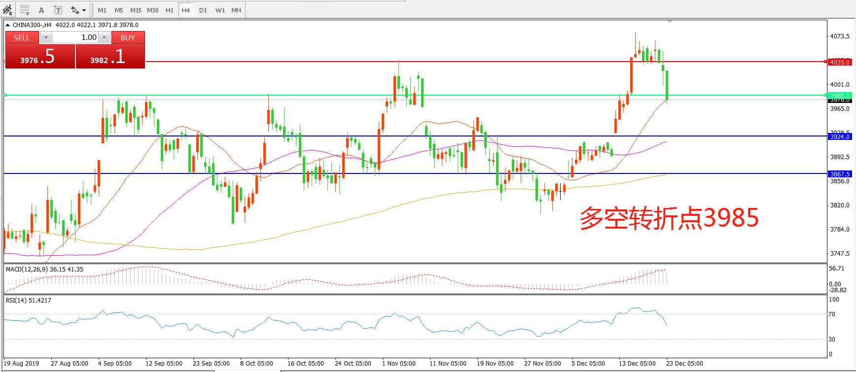 多空转折点:3985.00