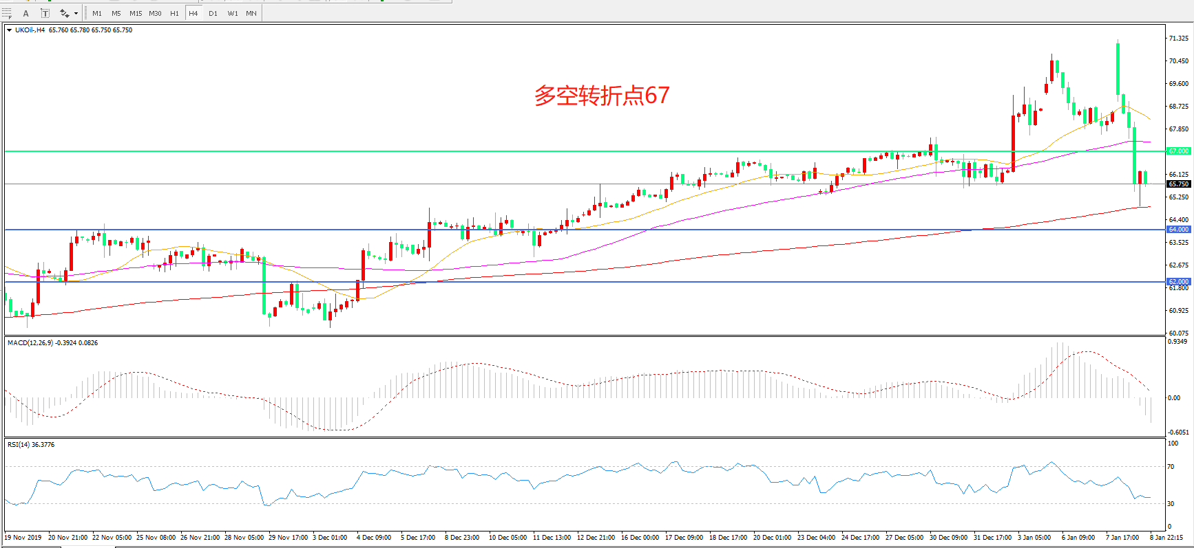 多空转折点:67.00