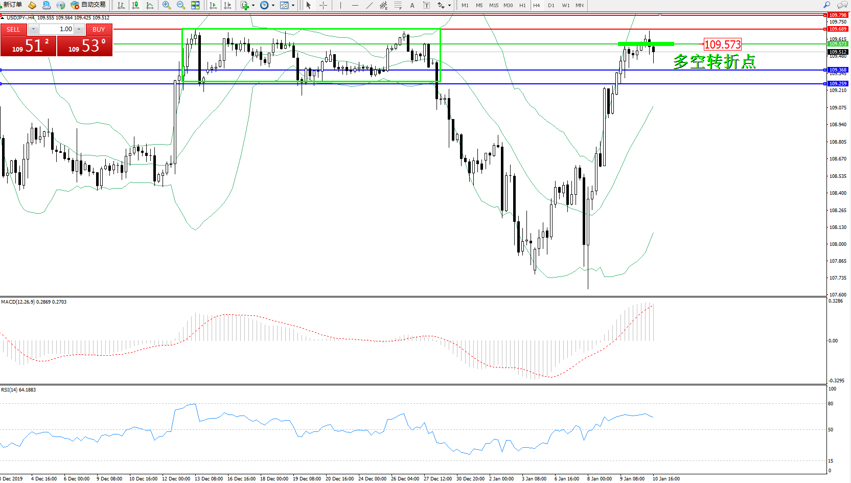 多空转折点:109.573