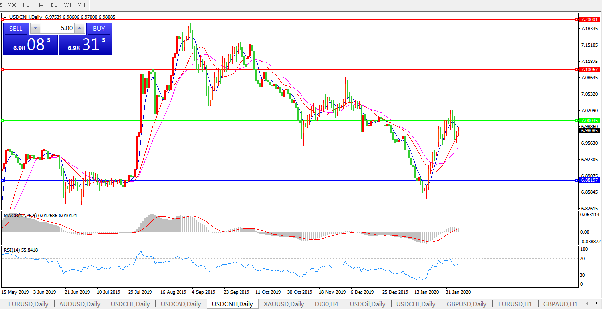 交易策略: 在7.0000之下,看跌,目标价位为6.8820,然后为6.7600。