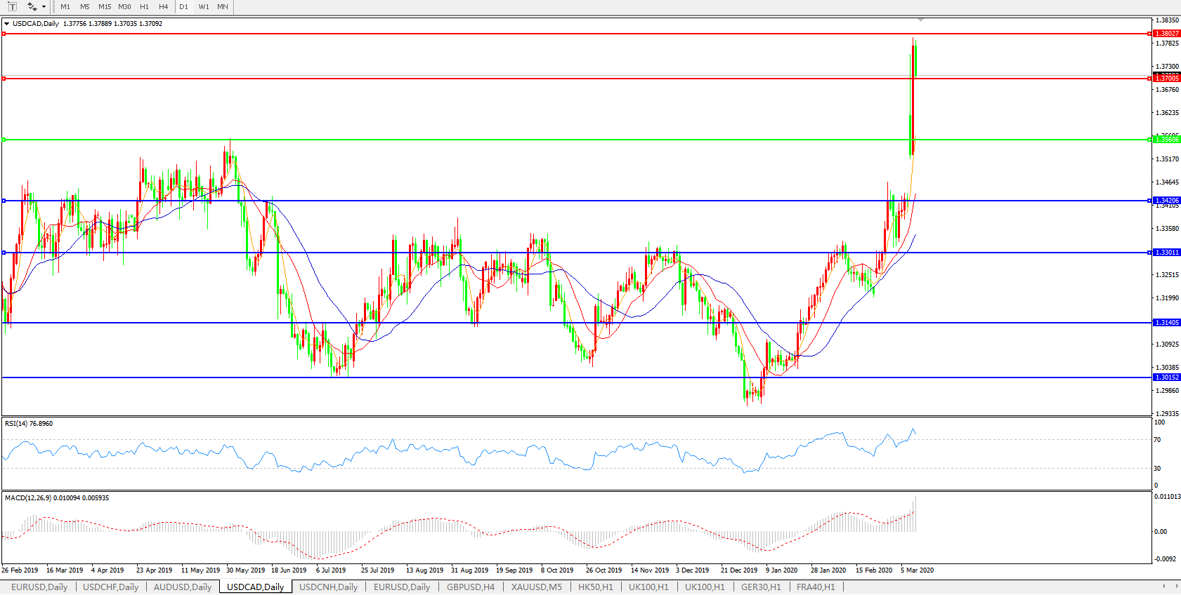 美元兑加元USDCAD 日线图: