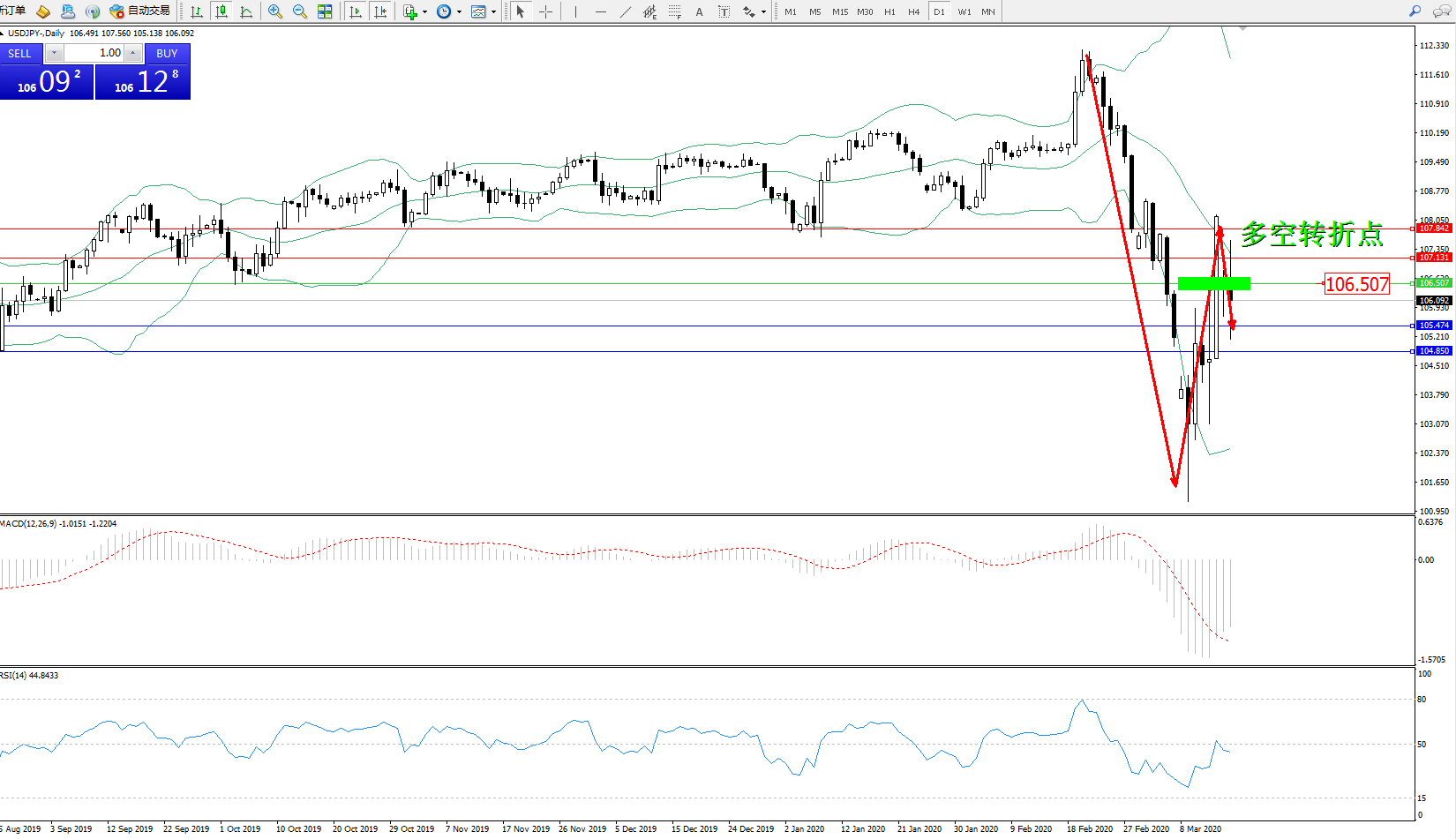 技术点评:低位多头动力呈V型强势反弹上涨,触及布林带指标中轨后出现宽幅震荡走势中,且布林带指标呈收口走势迹象,波幅空间处于中下轨区间愈发剧烈,MACD指标处于空头区域低位开始震荡回升中,RSI指标处于空头区域震荡上扬至50均衡线附近震荡徘徊中;