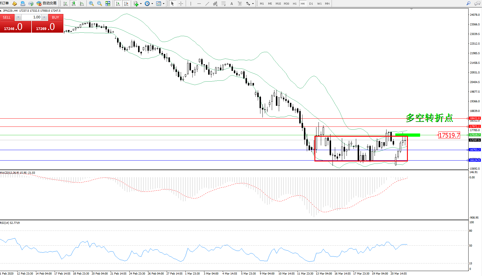 日经指数JPN225——4小时K线图显示:
