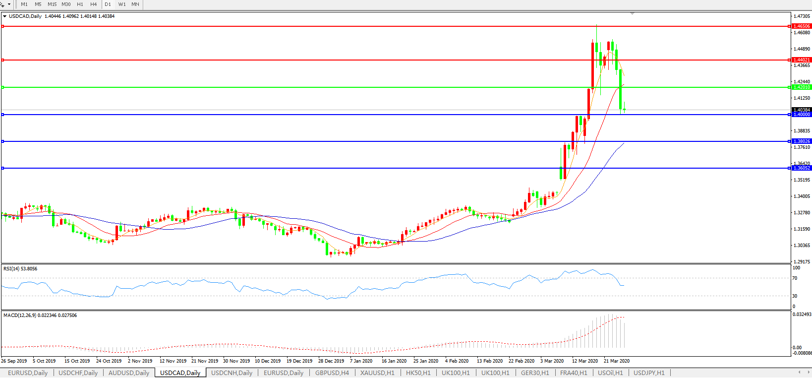美元兑加元USDCAD 日线图: