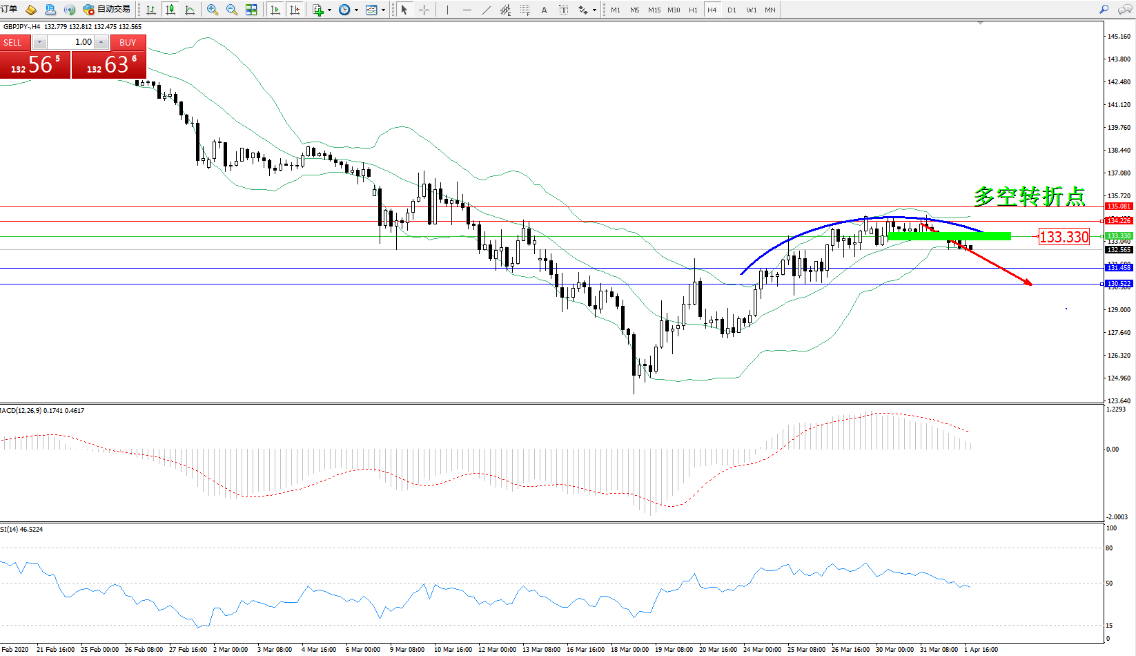 多空转折点:133.330