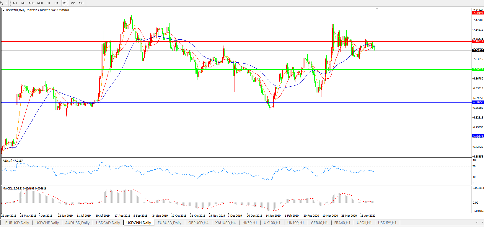 美元兑人民币USDCNH    日线图: