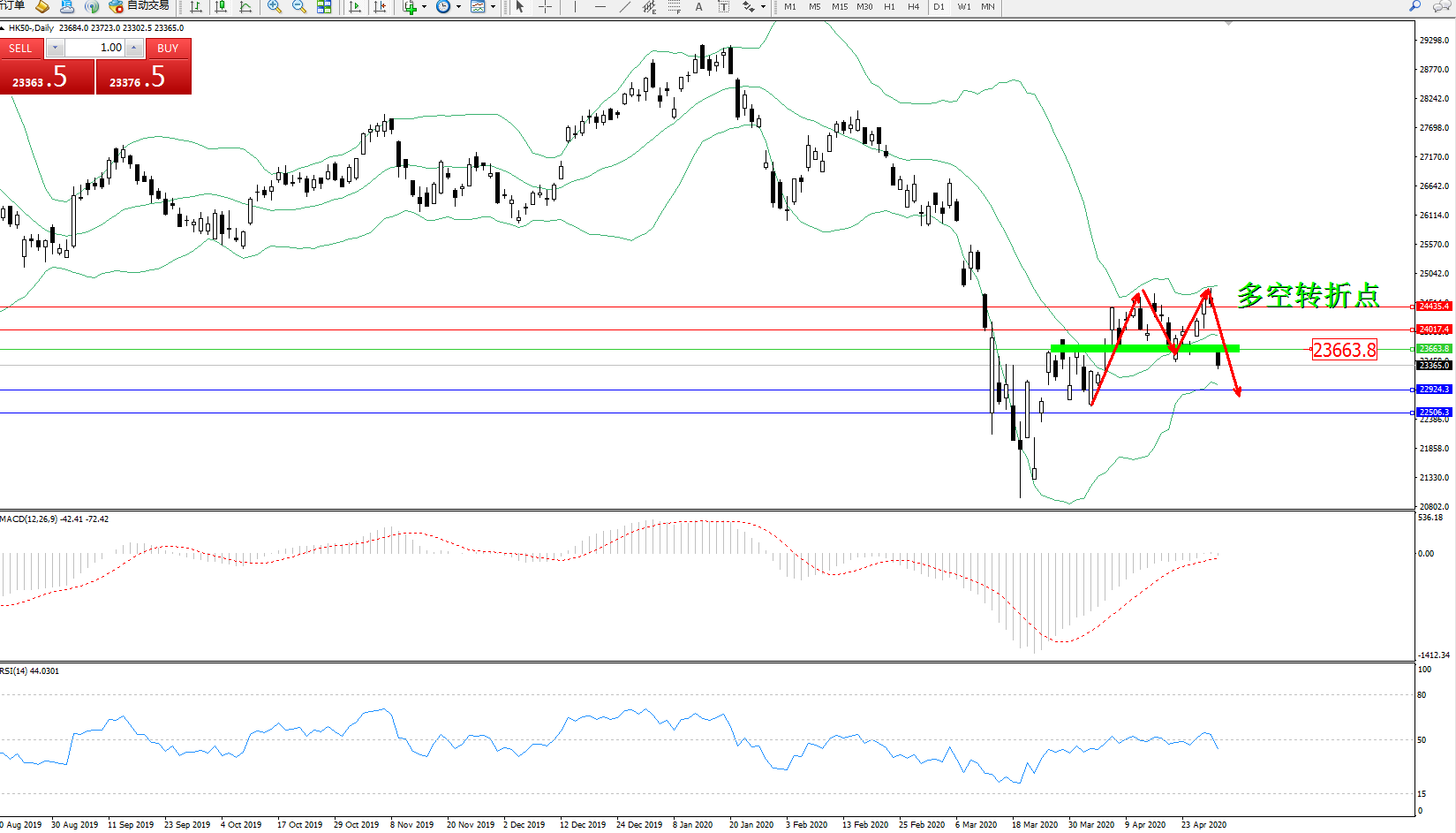 恒指HK50 ——日K线图显示: