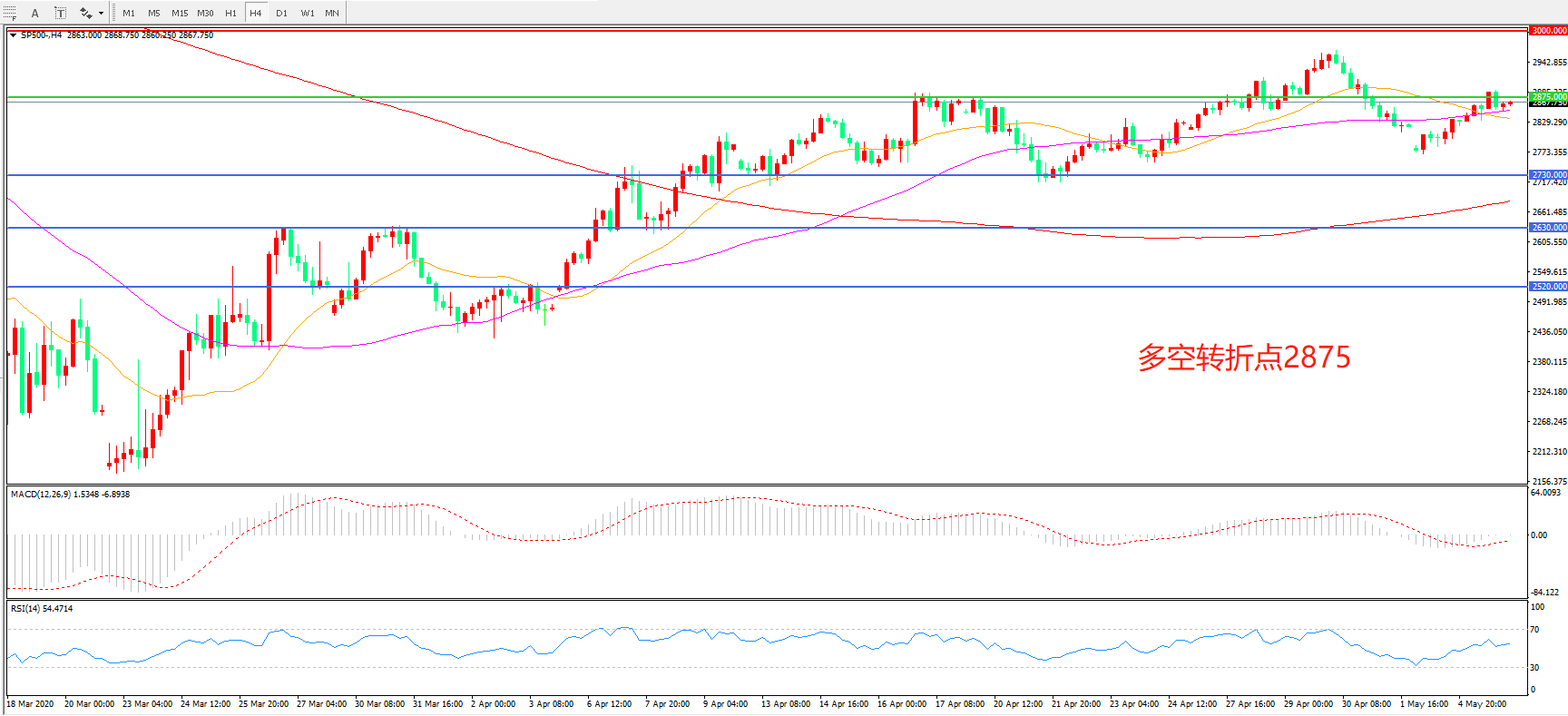 标普500 SP500   4小时图