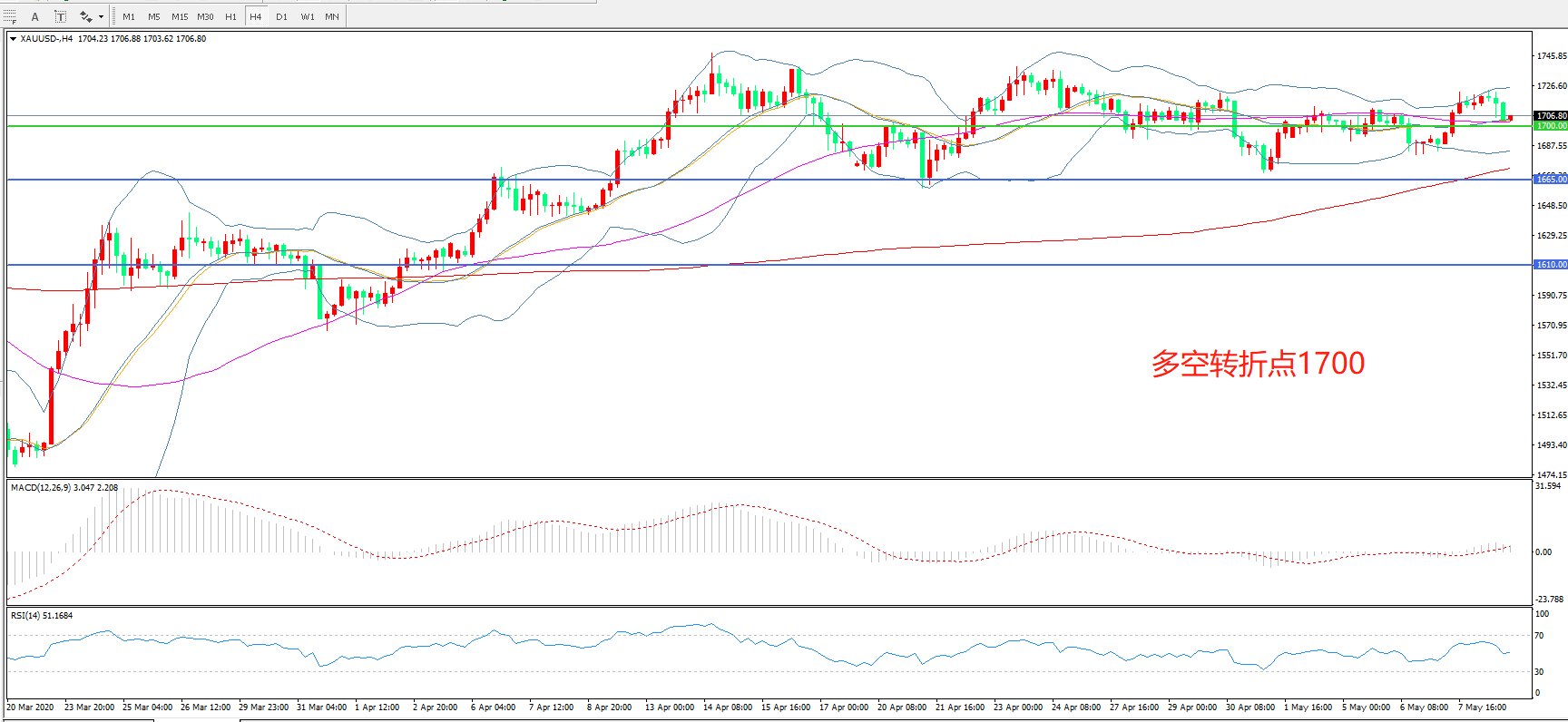 多空转折点:1700.00