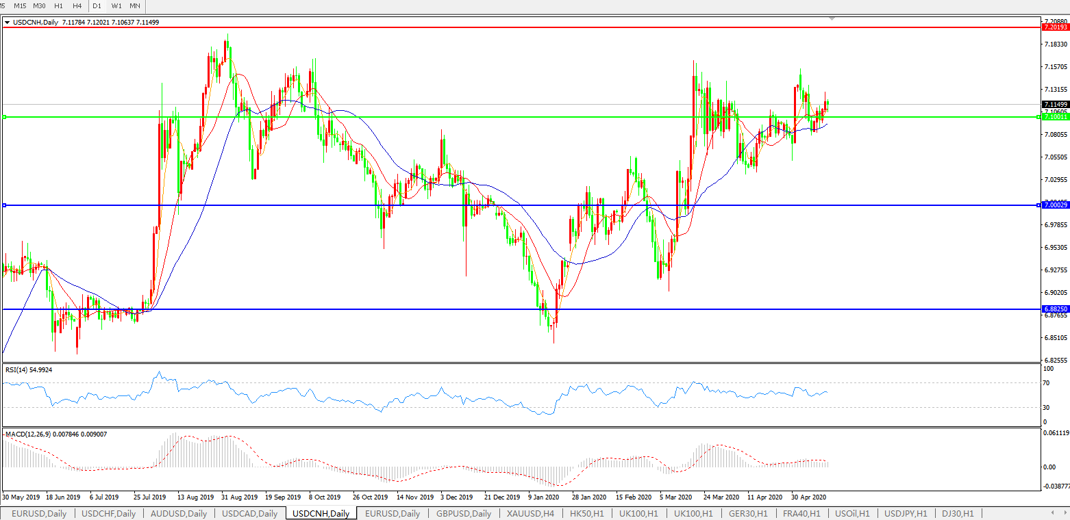 交易策略: 在7.1000之上,看涨,目标价位为7.2000,然后为7.3000。